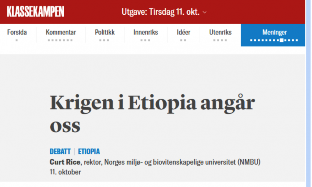 Curt Rice, Rector, Norwegian University of Life Sciences (NMBU) The Class Struggle, 11. October 2022 I was sitting in Oslo City Hall when Ethiopian Prime Minister...