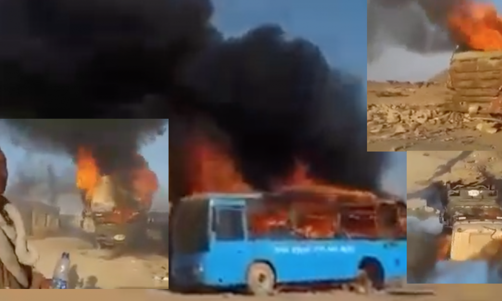 Eritrean troops set buses and trucks on fire, while filming themselves. In the video, Eritrean troops are seen carrying a piece of cloth and fuel, moving...