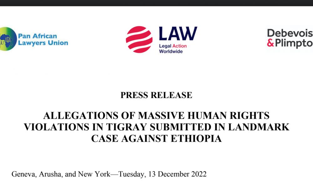 PRESS RELEASE ALLEGATIONS OF MASSIVE HUMAN RIGHTS VIOLATIONS IN TIGRAY SUBMITTED IN LANDMARK CASE AGAINST ETHIOPIA Geneva, Arusha, and New York—Tuesday, 13 December 2022 On Tuesday,...