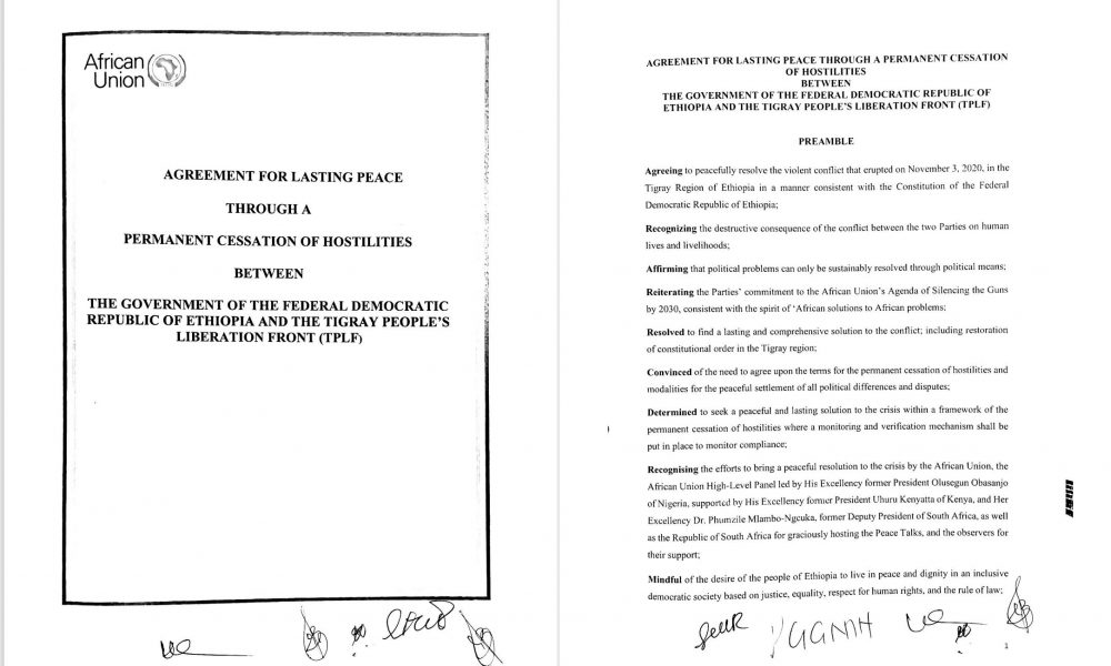 On 2 November 2022, the TPLF and the Abiy Regime signed a Cessation of Hostilities Agreement in Pretoria, South Africa. The Agreement, titled “Agreement for Lasting...